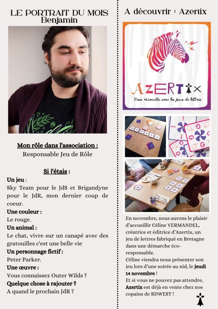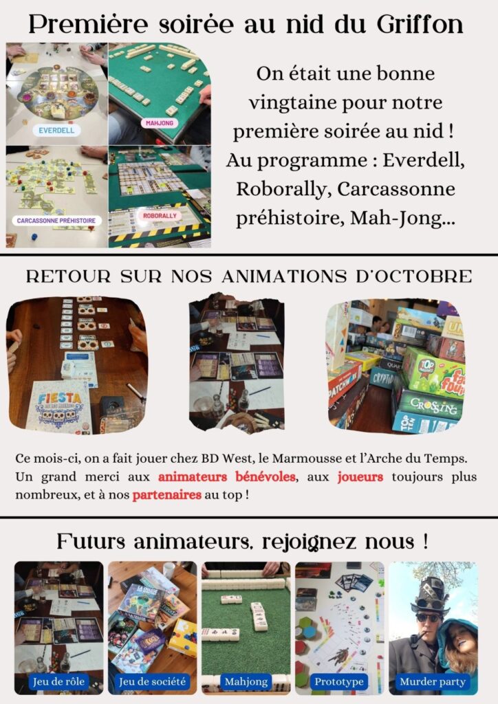 Si vous êtes intéressé pour devenir membre du Griffon Ludique, n’hésitez pas à nous contacter sur nos réseaux, par mail ou à l’occasion de l’une de nos animations !